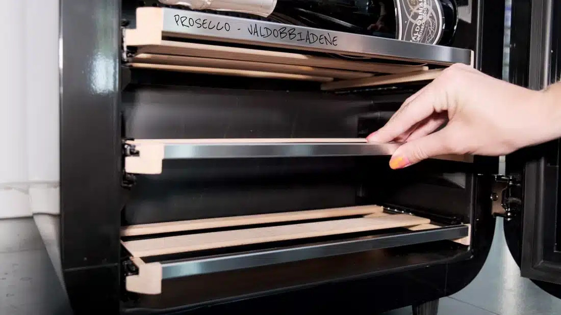 A 22 palackos Champagnotte egyzónás borhűtő, bármilyen helyiségben szabadon állóan elhelyezhető , stílust kölcsönözve környezetének.