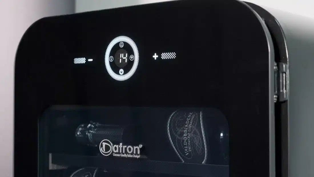 A teljesen új és exkluzív dizájnnal rendelkező 22 palackos borospince lekerekített sarkokkal és fogantyú nélküli nyitással rendelkezik. A praktikus LED és puha érintőképernyős kijelző az ajtó külső részén található, és leolvasztásgátló funkcióval is rendelkezik.