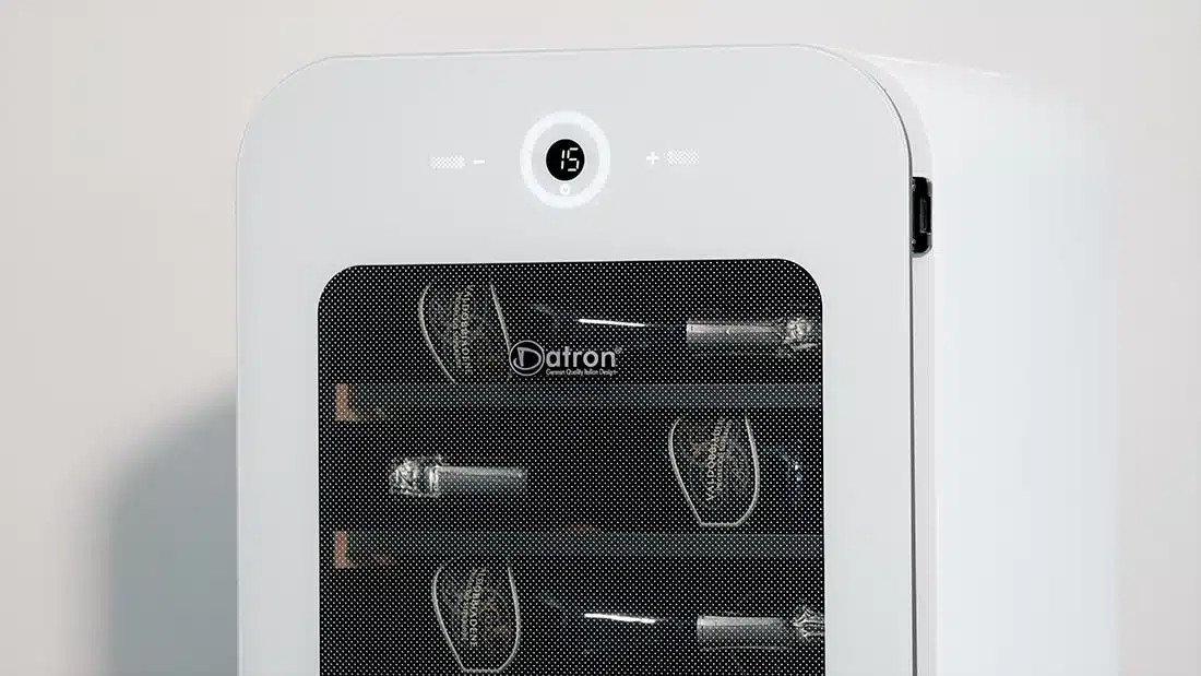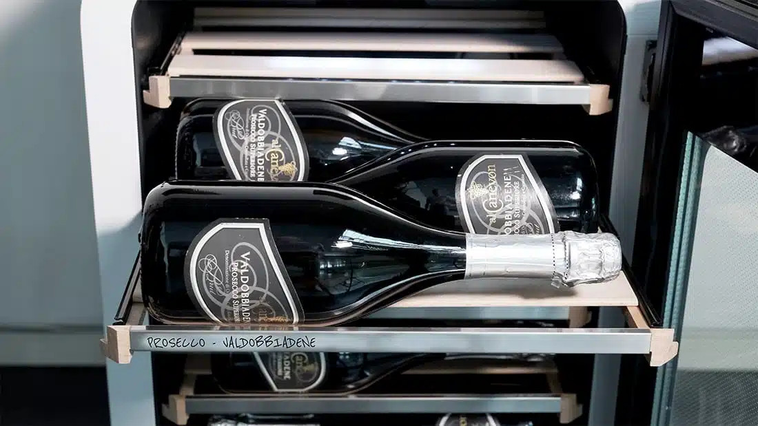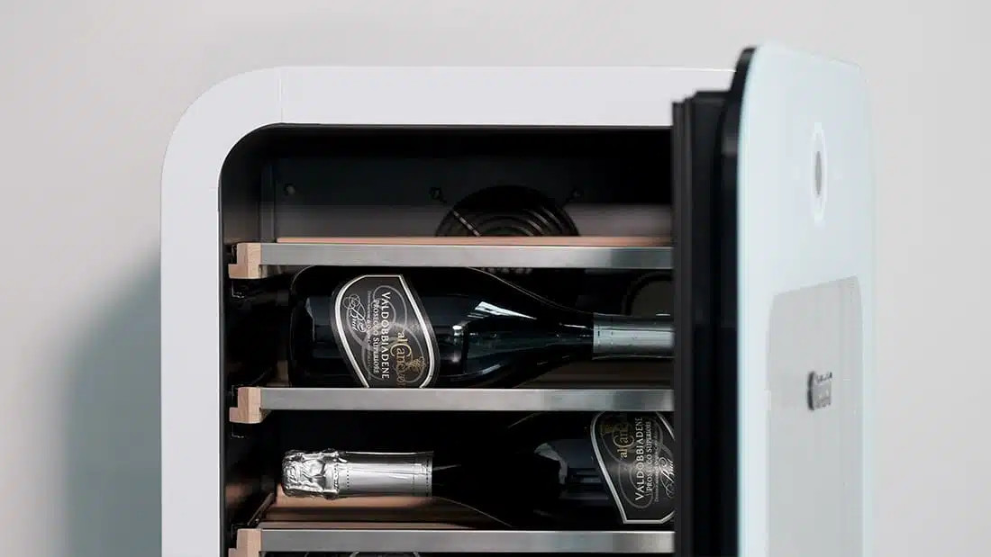 A teljesen új és exkluzív dizájnnal rendelkező borhűtő lekerekített sarkokkal és fogantyú nélküli ajtóval rendelkezik . A praktikus LED és lágy megjelenésű érintőképernyős kijelző az ajtó külső részén található, és leolvasztásgátló funkcióval is rendelkezik.